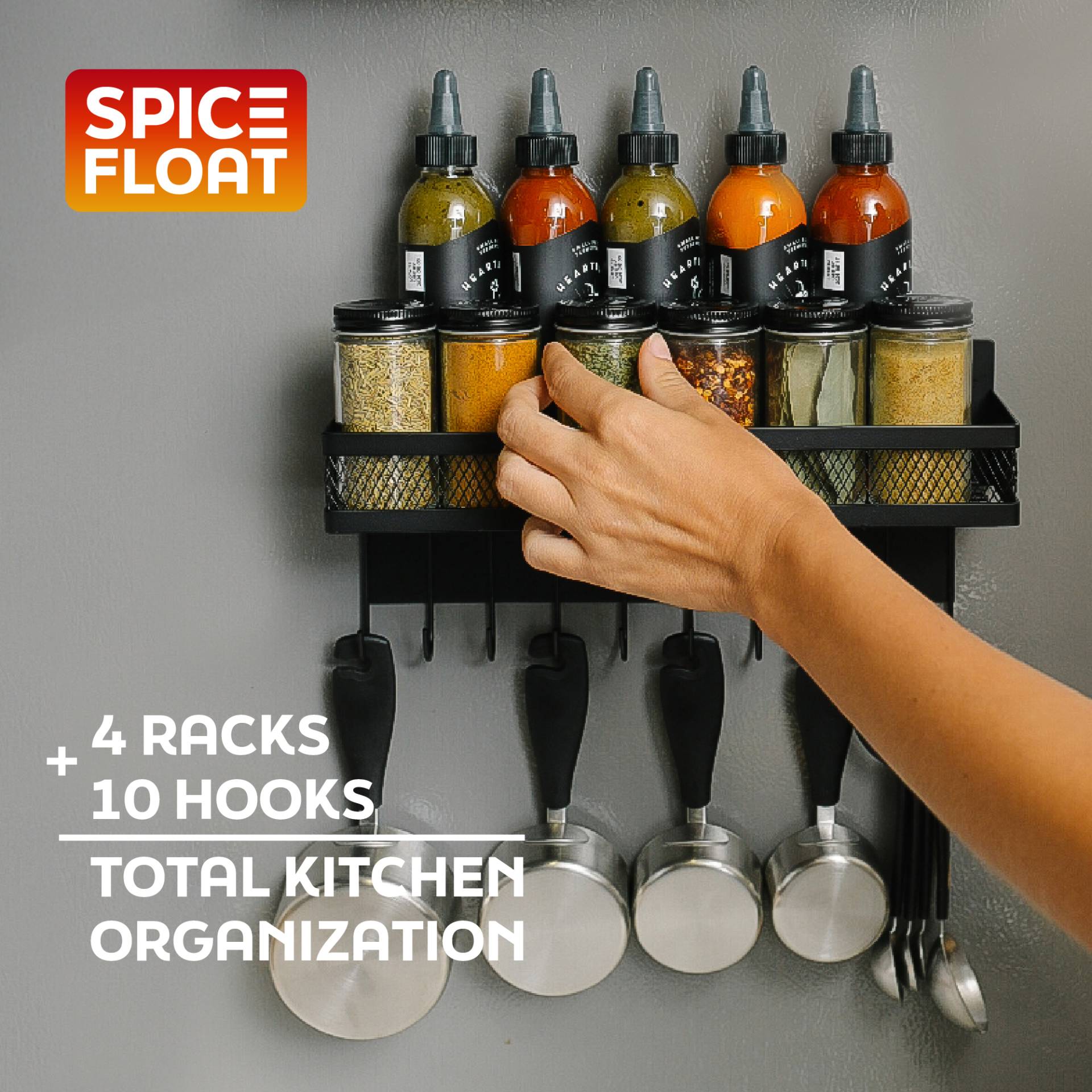 - Floating System Frees Up Limited Counter Space: Meal prep often means making a mess, but Spice Float Magnetic Racks keep countertop clutter down to a minimum.